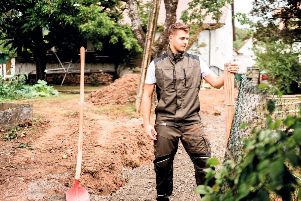 Material 65% Polyester, 35% Baumwolle, ca. 270 g/m2 ∙ Ergonomische Linienführung für mehr Bewegungsfreiheit ∙ Zwei Seitentaschen ∙ Zwei Gesäßtaschen, rechts mit Patte und Druckknopf ∙ Rechts: ergonomisch positionierte Meterstabtasche auf Seitennaht ∙ Links: Schenkeltasche mit Patte und Druckknopf, aufgesetzte Stifttasche, integrierte Smartphonetasche ∙ Bund mit Gummizug ∙ Schlitz mit Reißverschluss ∙ Belastungspunkte mit Riegeln gesichert