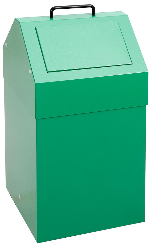 ∙ Aus verzinktem Qualitäts-Stahlblech ∙ Abnehmbares Oberteil mit selbstschließender, feuer- und geruchshemmender Einwurfklappe ∙ Extra lang heruntergezogenes Kopfteil hält die Abfalltüte und verdeckt gleichzeitig hässliche Tütenränder ∙ Zur Innenaufstellung geeignet · Umweltfreundliche Pulverbeschichtung – fünf auffällige Sortierfarben