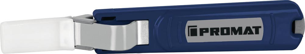 mit Hakenklinge und Schutzkappe · für alle gängigen Rundkabel · mit Hilfe einer Stellschraube am Griffende kann die Schnitttiefe des Schneidmessers stufenlos reguliert werden