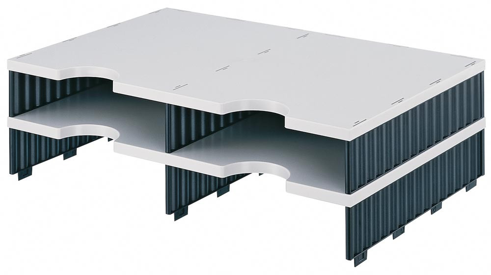 · Zur Verwahrung von Kopierpapier, Zeitschriften, etc. oder als Postsortieranlage · Durch Aufbaumodule jederzeit erweiter- und kombinierbar · Aus hochbelastbarem Polystyrol · Boden in grau, Seitenteile farblich abgesetzt · Inkl. Beschriftungsschilder · Anlieferung erfolgt zerlegt im handlichen Karton