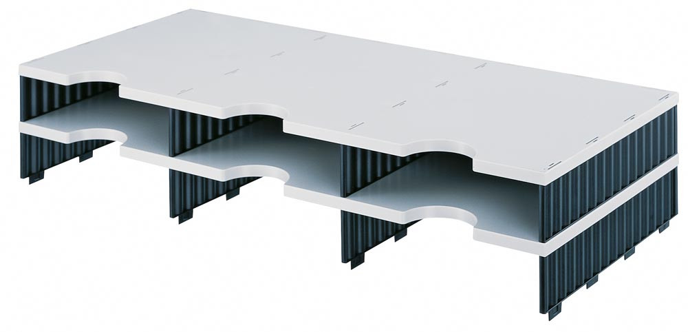 · Zur Verwahrung von Kopierpapier, Zeitschriften, etc. oder als Postsortieranlage · Durch Aufbaumodule jederzeit erweiter- und kombinierbar · Aus hochbelastbarem Polystyrol · Boden in grau, Seitenteile farblich abgesetzt · Inkl. Beschriftungsschilder · Anlieferung erfolgt zerlegt im handlichen Karton