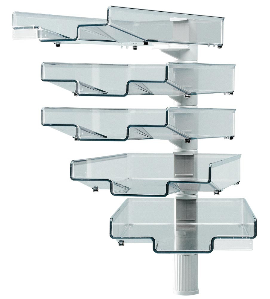 Ablagekorb-Tischständer, BxTxH 270x370x590 mm, 5 Kunststoffschalen transparent, Ständer lichtgrau EP522450