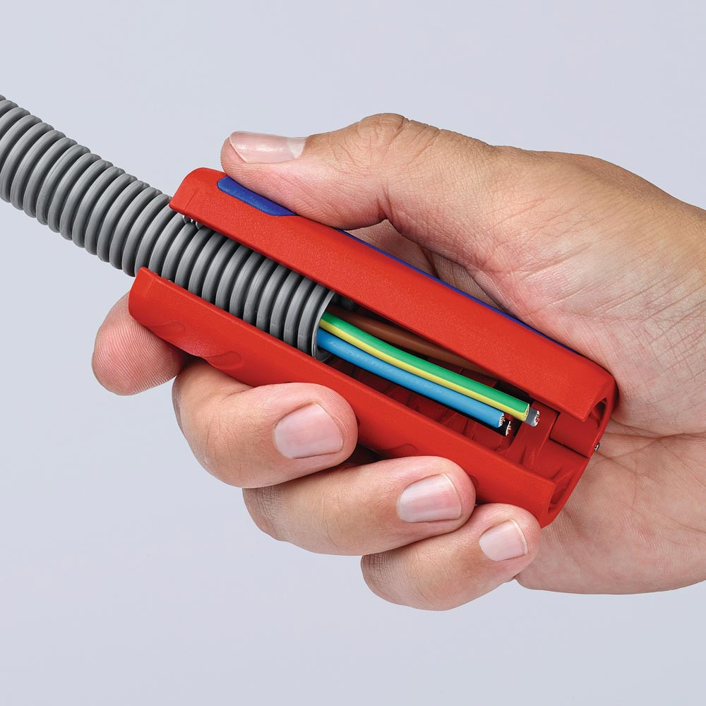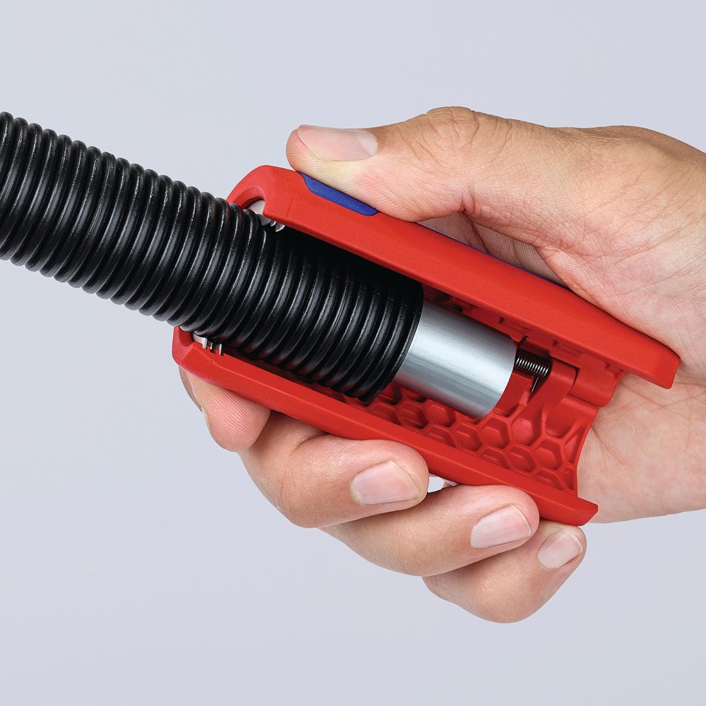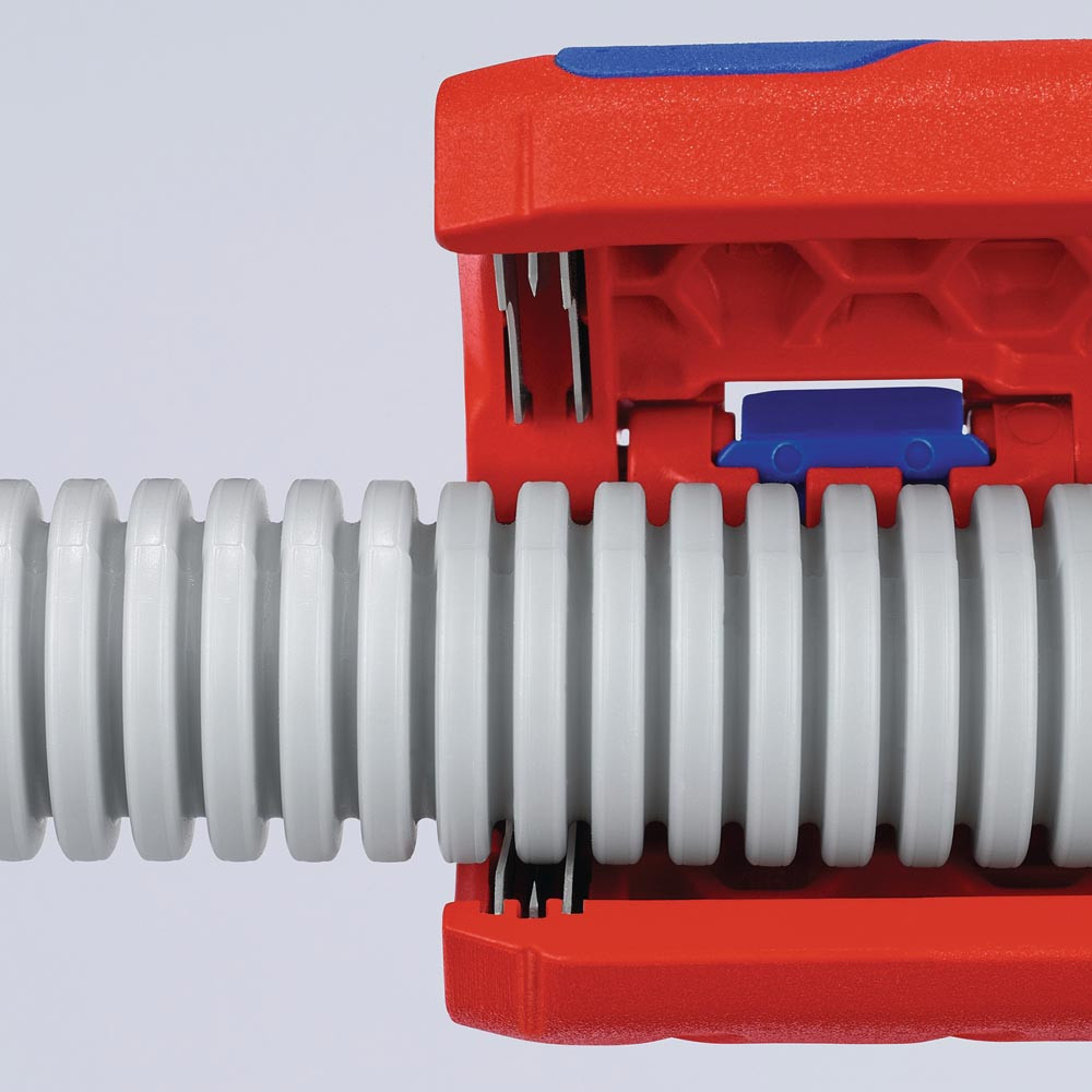 Wellrohrschneider · zum Ablängen von leeren oder fertig konfektionierten Wellrohren · doppelseitige Führung für präzisen Schnitt · Gehäuse aus stabilem Polyamid-Compound-Kunststoff