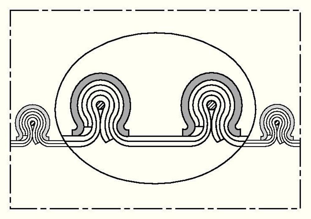 Konstruktion: 1. Klemmprofil-Stützwendel: komplett Edelstahl (INOX), 2. mehrlagige