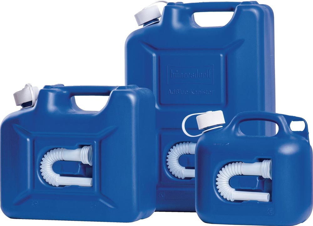 aus HD-PE · Kindersicherheitsverschluss · weißes Zubehör speziell für den Transport von wässriger Harnstofflösung AUS 32 · mit Auslaufrohr