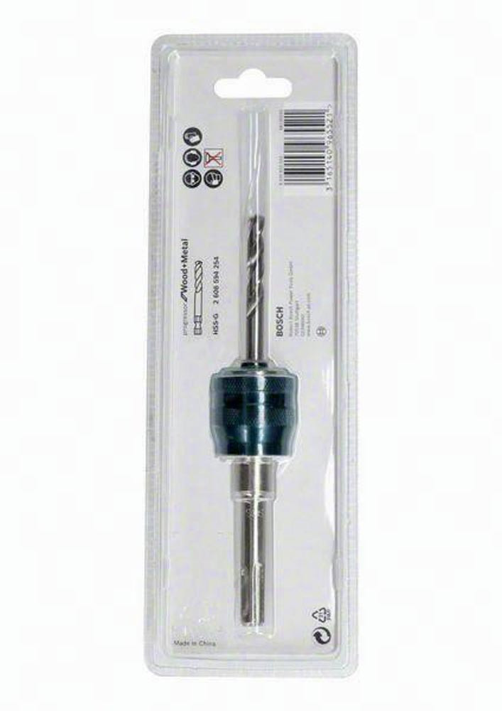 schlüsselloses System · nur ein einfacher Klick, um die Lochsäge zu entfernen · schneller und einfacher Auswurf des Bohrkerns · Zentrierbohrer HSS-G sind für Holz, Trockenbauwände Kunststoffe, Metalle und Nichteisenmetalle sowie Edelstahl geeignet