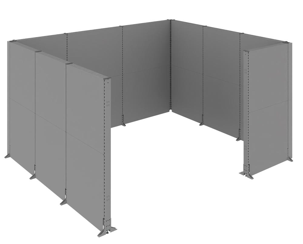 Akustik-Stellwand, BxTxH 3730x3230x2000 mm, ohne Tür, ohne Dach, RAL 7037 staubgrau