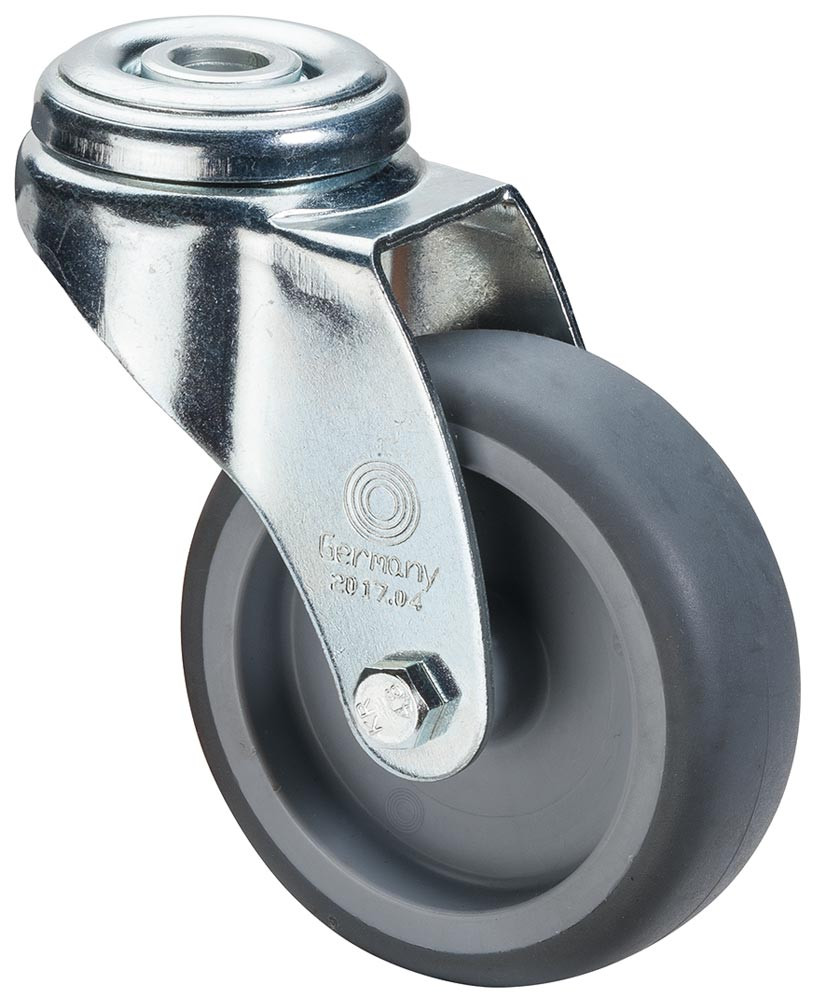 Apparate-Lenkrolle, Gummi grau, Durchm. 100 mm, Traglast 70 kg, Gleitlager, Rückenloch