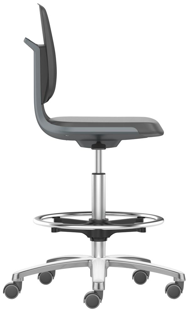 Arbeitsdrehstuhl mit Flex-Rückenlehne u. Sitzkante, Sitzschale anthrazit, Sitz Integralschaum schwarz, Rollen u. Fußring, Sitz Höhe 560-810 mm
