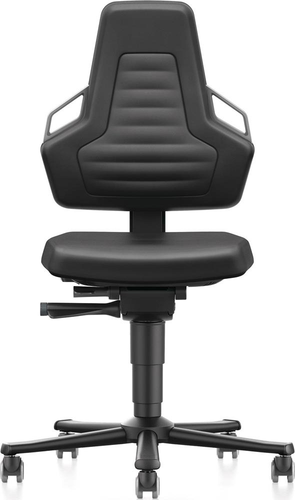 Arbeitsdrehstuhl mit autom. Gewichtregulierung, Sitz Integralschaum schwarz, Griffe grau, Rollen, Sitz Höhe 450-600 mm