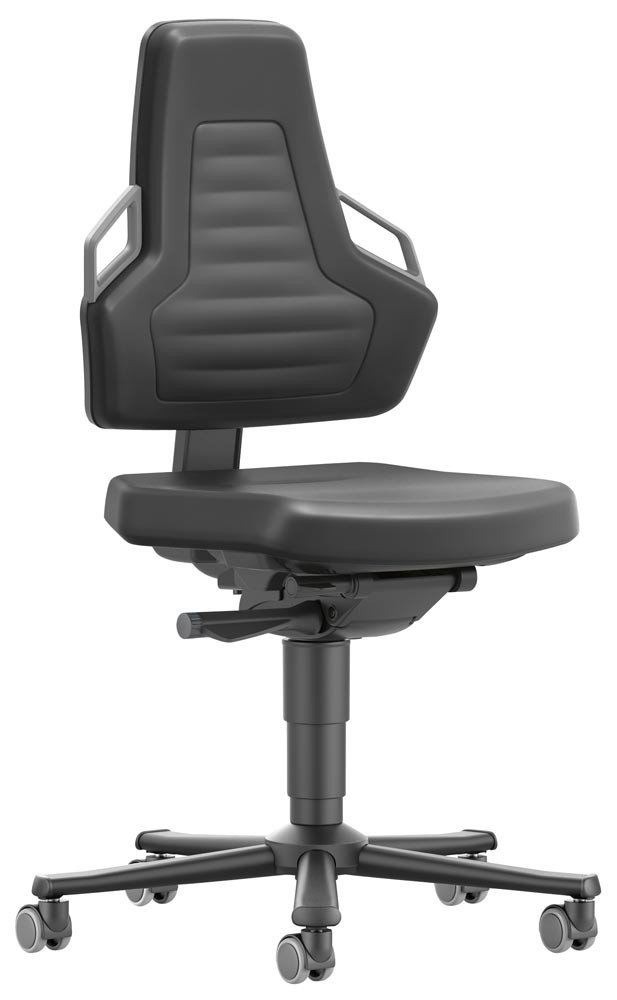 Arbeitsdrehstuhl mit autom. Gewichtregulierung, Sitz Integralschaum schwarz, Griffe grau, Rollen, Sitz Höhe 450-600 mm