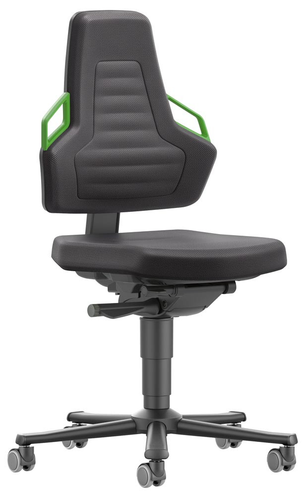 Arbeitsdrehstuhl mit autom. Gewichtregulierung, Sitz Stoff schwarz, Griffe grün, Rollen, Sitz Höhe 450-600 mm