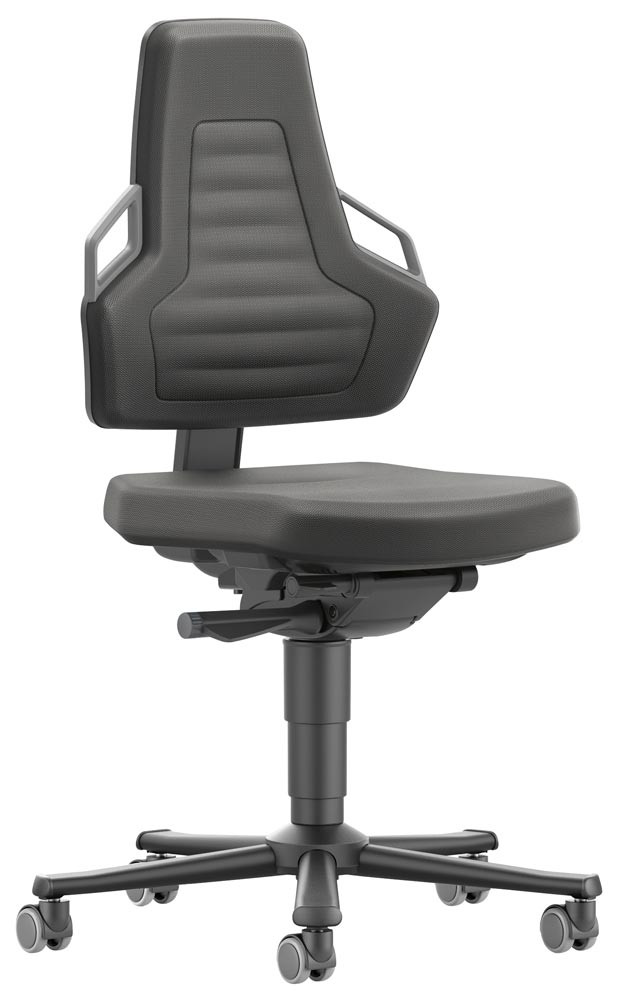 Arbeitsdrehstuhl mit autom. Gewichtregulierung, Sitz Kunstleder schwarz, Griffe grau, Rollen, Sitz Höhe 450-600 mm E6042557