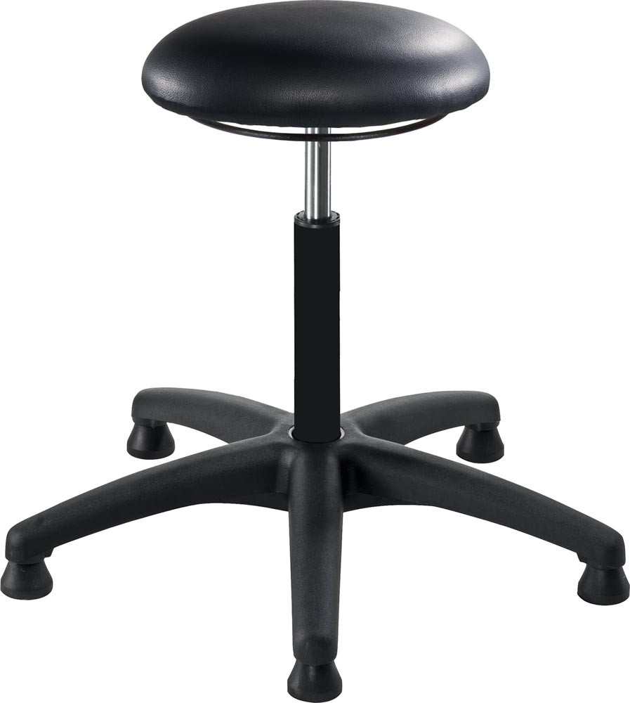 Arbeitshocker mit Gasfederhöhenverstellung, mit Gleiter, Sitzfläche mit Kunstleder schwarz, Sitz Höhe : 450-580 mm