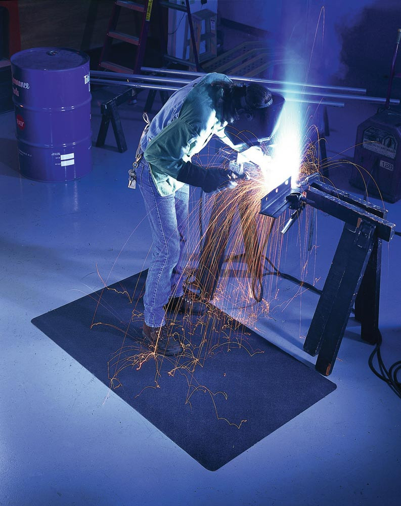 Matte mit hohem ergonomischen Wirkungsgrad und anti-ermüdender Wirkung · ausgestattet mit Kegeldesignoberfläche, Material Nitrilkautschuk · Materialstärke 15 mm, mit abgeschrägten Kanten · widerstandfähig gegen eine große Anzahl von Chemikalien, Fette, Öle und Flüssigkeiten · beständig gegen heiße Metallspane mit kurzen Expositionen bis zu 600 °C · Einsatzbereich für fast alle Arbeitsplätze