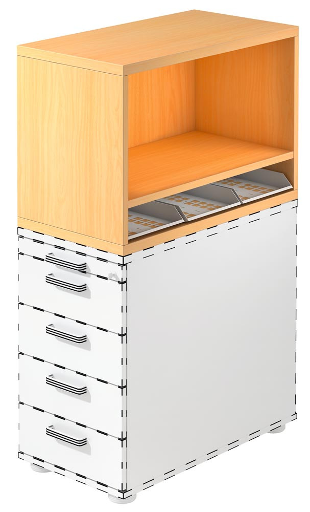 Aufsatzregal für Standcontainer, 1 Boden, BxTxH 428x800x530 mm, buche EP551211