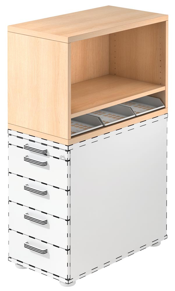 Aufsatzregal für Standcontainer, 1 Boden, BxTxH 428x800x530 mm, buche EP551211