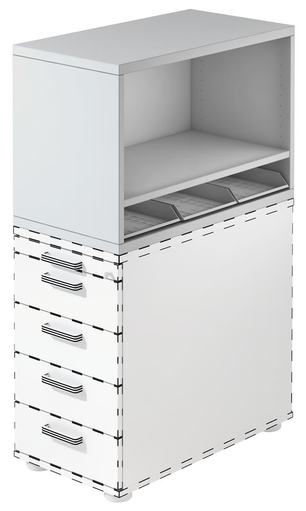 Aufsatzregal für Standcontainer, 1 Boden, BxTxH 428x800x530 mm, weiß EP551212