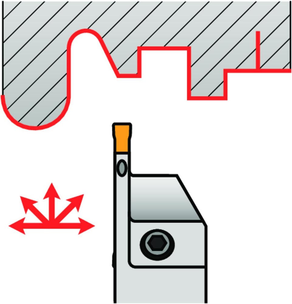 GL3-A1616KFR-16-45 ist ein außen Rechter-Werkzeughalter mit innerer Kühlmittelzufuhr für GL-Wendeschneidplatten · das für Langdrehautomaten entwickelt wurde und einen einfachen Zugang zum Klemmen der Wendeschneidplatte bietet. Geeignet zum Radialstechen · Abstechen · Drehen und Profilieren.Körper für längere Standzeit oberflächenbehandelt.