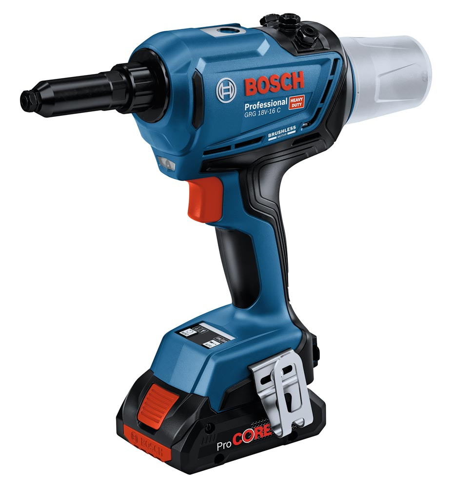 Akku-Nietpistole mit bürstenlosem EC-Motor ∙ Integrierte Bluetooth Connectivity ∙ LED-Arbeitsleuchte ∙ Mit 2 Betriebsarten "Auto" und "Manual" ∙ Für Blindnieten von 3,0 - 6,4 mm