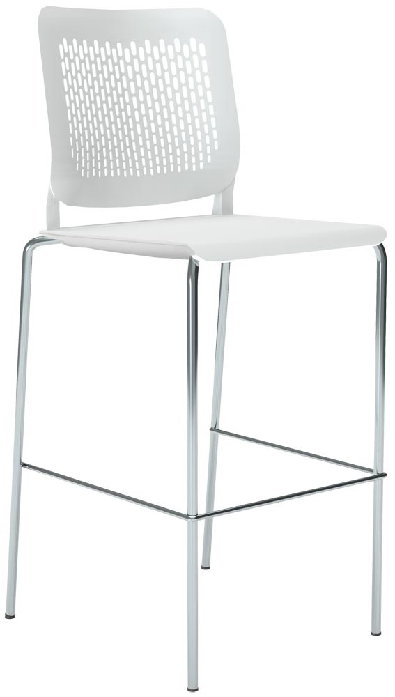 Barhocker mit Fußstütze, stapelbar, Gestell verchromt, Sitz Kunststoff, weiß