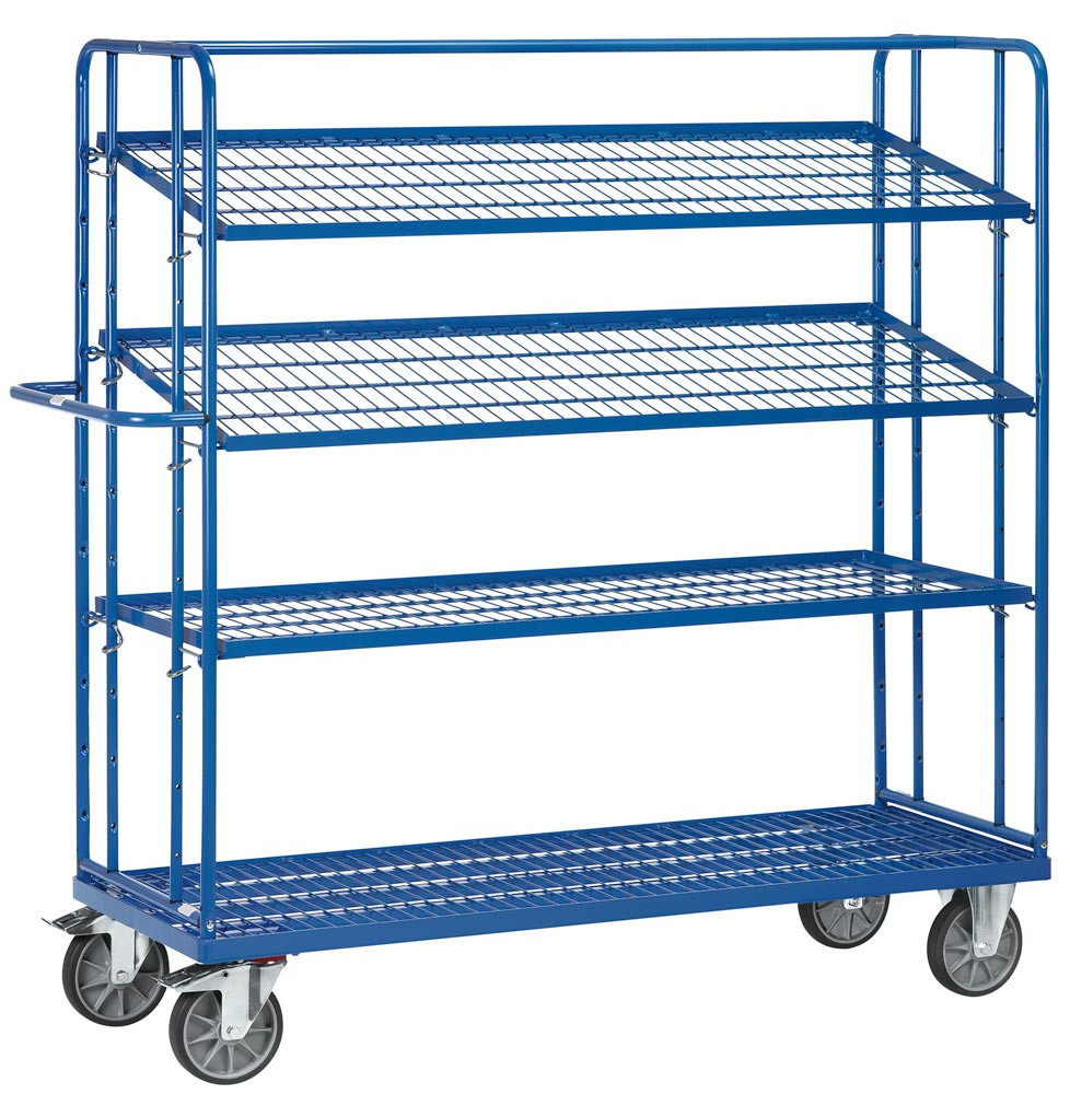 Beistell- und Kommissionierwagen, 4 Gitterböden, Ladefläche LxB 1650x610 mm, Außenmaße 1830x620x1800 mm, Traglast 500 kg, RAL 5007 brillantblau
