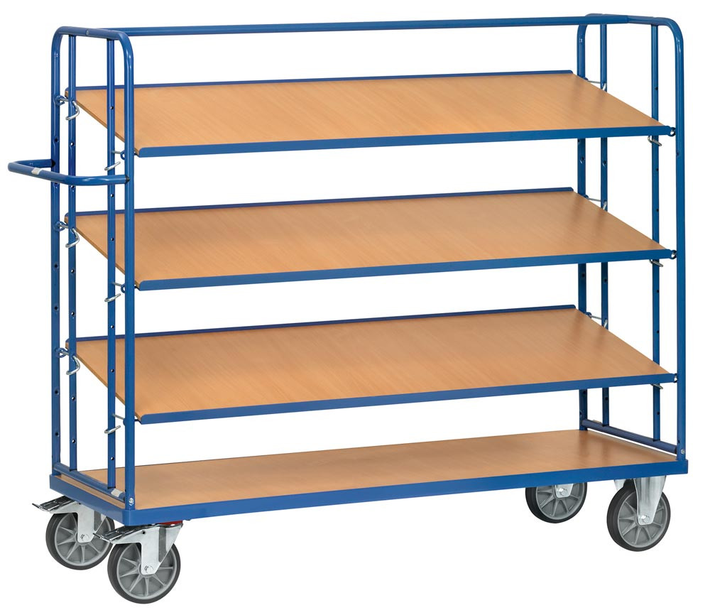 Beistell- und Kommissionierwagen, 4 Holzböden, Ladefläche LxB 1250x610 mm, Außenmaße 1430x620x1800 mm, Traglast 500 kg, RAL 5007 brillantblau EP534575