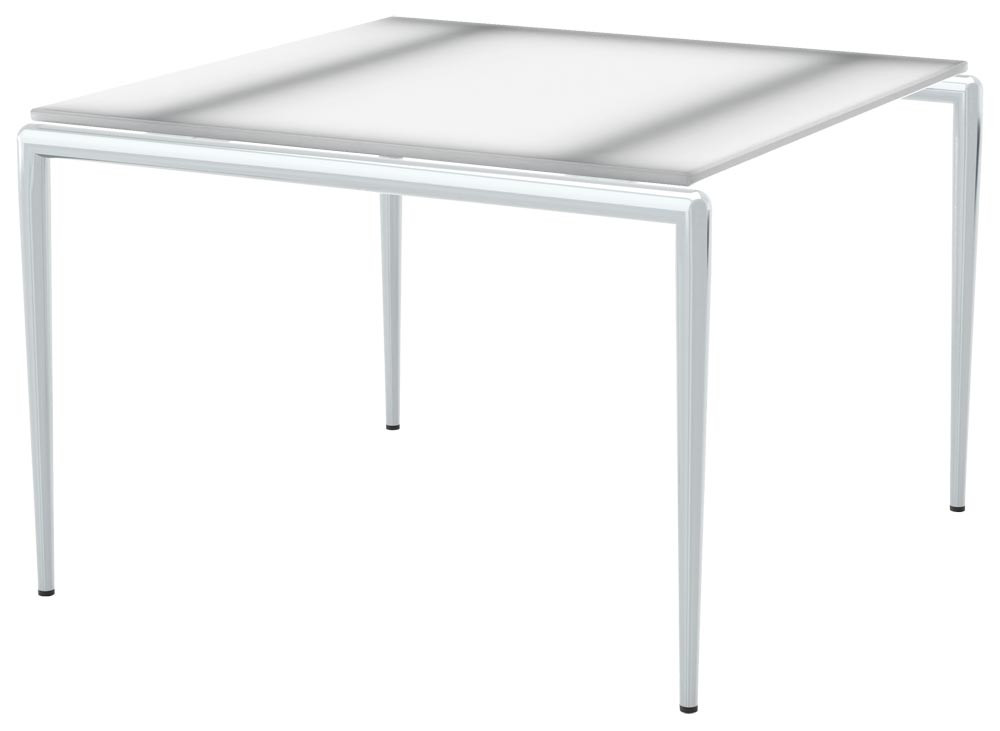 ∙ Quadratische Tischplattenform ∙ Tischplatte Glas, matt ∙ 4-Fuß-Gestell verchromt ∙ B x T x H: 600 x 600x 400 mm