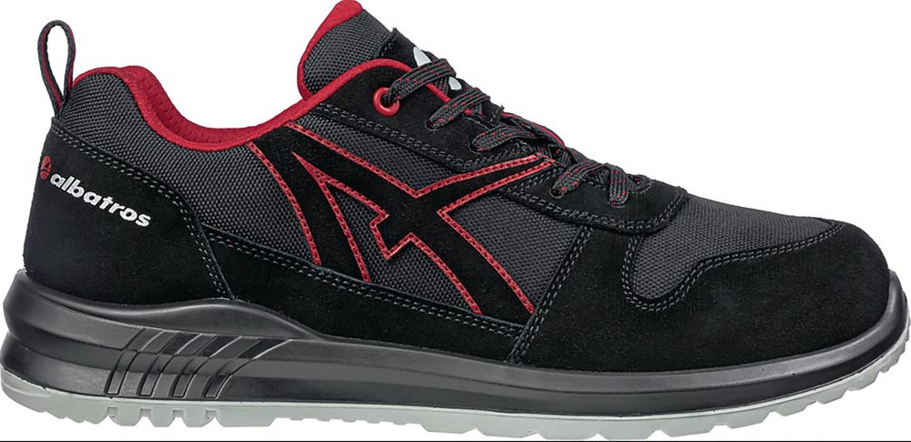 Berufsschuh CLIFTON ST LOW Größe 45 schwarz/rot hydrophobiertes Veloursleder O2 ESD SRC EN ISO 20347