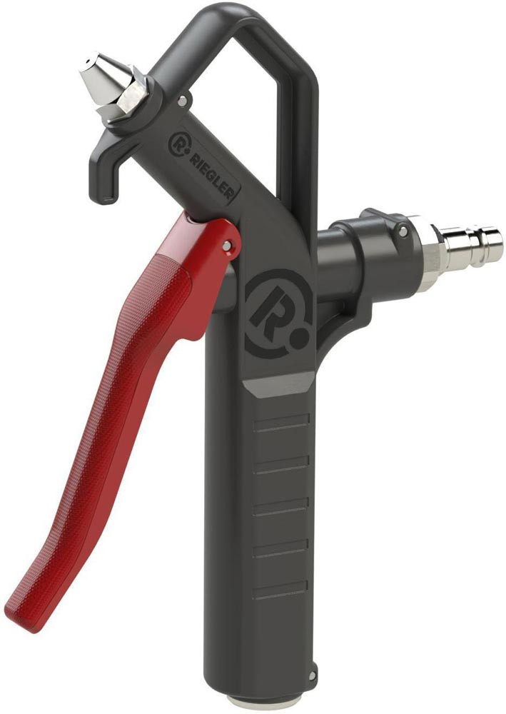 Dosierbare Blaspistole · Kunststoff · Standarddüse · oben anschließbar · PN max. 12 bar · Nippel NW 7,2. Zum Ausblasen und Reinigen von Maschinen · Motoren · Lagern · Gleitflächen · Bohrungen aller Art · Hohlkörpern · Formen usw.