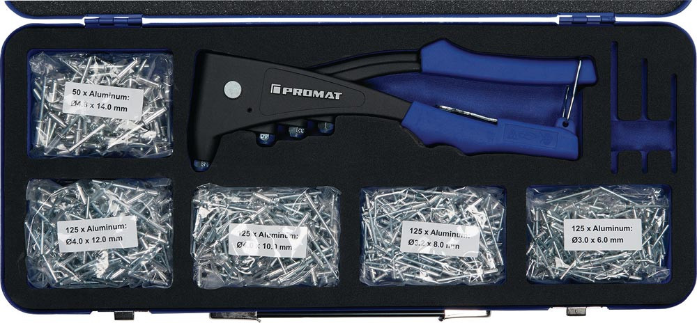 Blindnietsortiment 601-teilig Zange 4000813025 u.Blindniete Alu/Stahl i.Blechkoffer