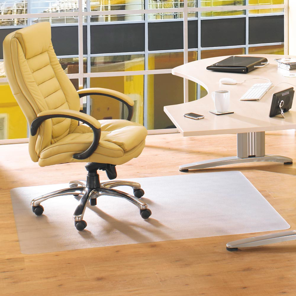 · Zum täglichen Schutz vor Kratzern, Abrieb und Abnutzungserscheinungen Ihres Bodens · Robust, strapazierfähig, zuverlässig und flexibel · Minimaler Rollwiderstand für einfaches Gleiten mit dem Bürodrehstuhl · 100 % frei von schädlichem DIDP-Phthalat für eine bessere Luftqualität gegenüber herkömmlichem PVC · Das transparente Design lässt Ihren Boden sichtbar