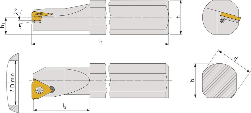 zum Innengewindedrehen · für Wendeschneidplatte 16 IR 1,5° · mit Innenkühlung