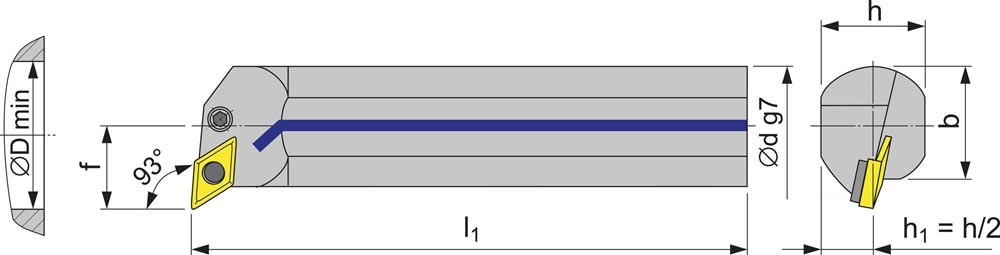 Bohrstange A32S-PDUNR 15 rechts vernickelt mit Innenkühlung E6493217