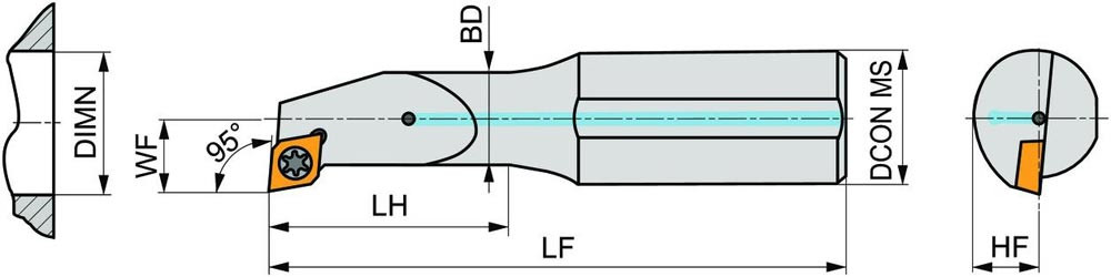Dreh-Bohrstange mit Schraubklemmung zum spannen von 75° Rhombus positive Wendeschneidplatten mit einem Innenkreisdurchmesser von 5.56mm · 2.38mm Dick (ISO Bezeichnung EP.. 0502.. ) · rechte Ausführung zum 95° Stirn-und Längsdrehen mit abgesetzem Schaft · Hartmetall mit Kühlkanalbohrung · 6mm Durchmesser x 100mm Länge für Innenkegeldrehen und Längsdrehen mit und ohne Schulter