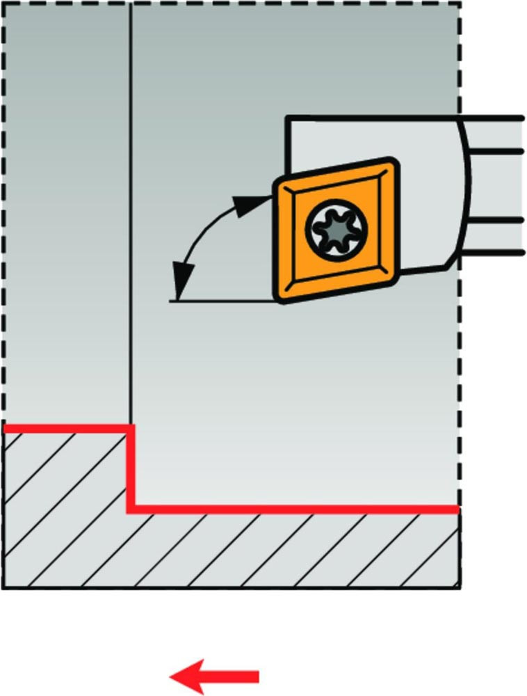 Dreh-Bohrstange mit Schraubklemmung zum spannen von 80° Rhombus positive Wendeschneidplatten mit einem Innenkreisdurchmesser von 6.35mm · 2.38mm Dick (ISO Bezeichnung CC.. 0602.. ) · linke Ausführung zum 90° Längsdrehen mit abgesetzem Schaft · Stahl ohne Kühlkanalbohrung · 10mm Durchmesser x 100mm Länge für Innenkegeldrehen und Längsdrehen ohne Schulter