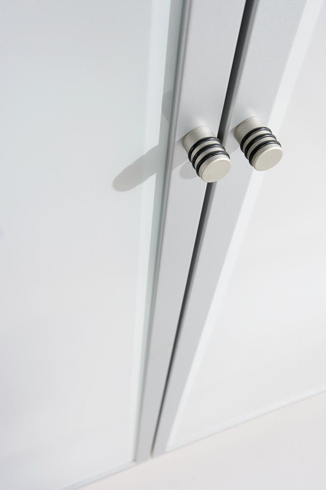 ∙ Beidseitig melaminharzbeschichtete Oberflächen, blend- und reflexfrei, abriebfest und pflegeleicht ∙ Von oben verstellbare Sockelfüße zum Ausgleich von Bodenunebenheiten ∙ Hochwertige Metallbeschläge für höchste Beanspruchung · Streifengriff