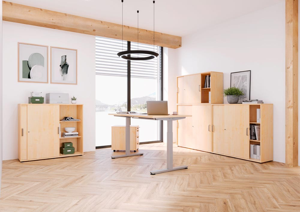 Büro-Schiebetürenschrank, BxTxH 1200x400x748 mm, 2 OH, 1 Boden, Schloss, ahorn EP532359