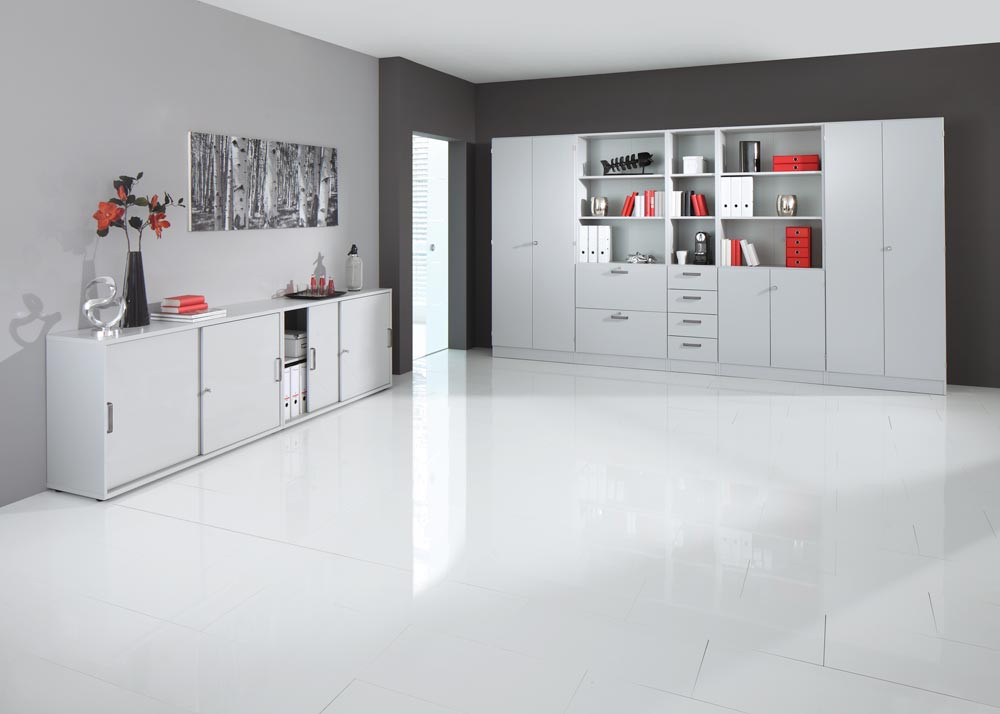Büro-Schiebetürenschrank, BxTxH 1200x400x748 mm, 2 OH, 1 Boden, Schloss, weiß EP532361