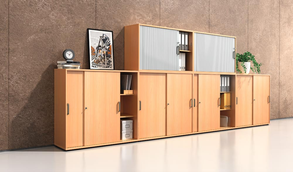 Büro-Schiebetürenschrank, BxTxH 1200x400x748 mm, 2 OH, 1 Boden, Schloss, buche EP532360
