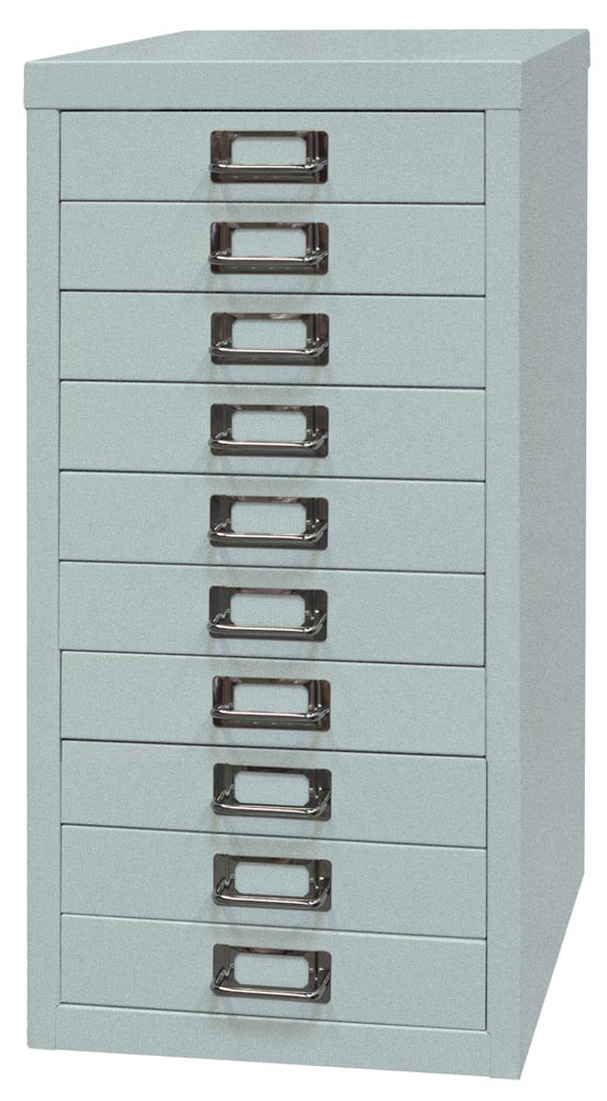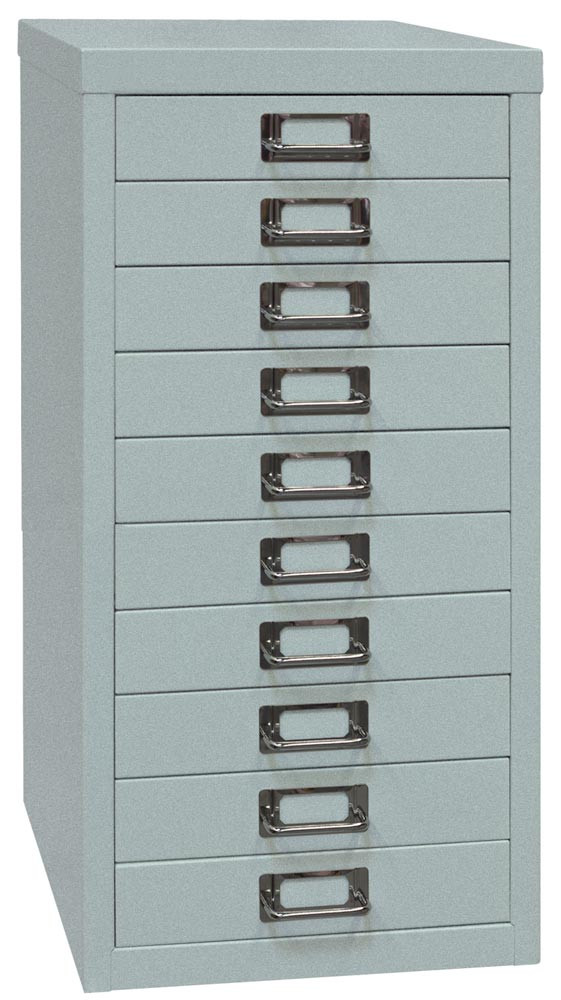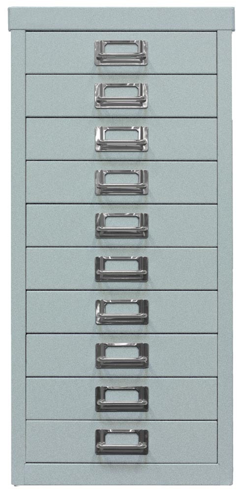 Büro-Schubladenschrank, BxTxH 279x380x590 mm, 10 Schubladen 51 mm, DIN A4, silber