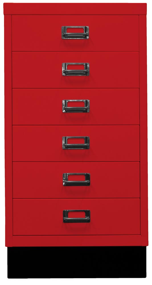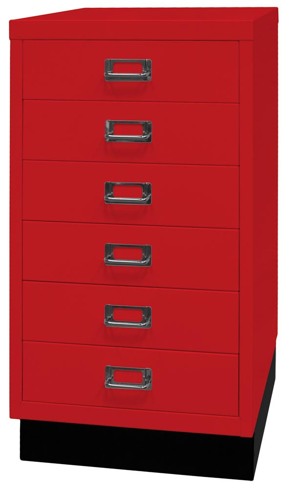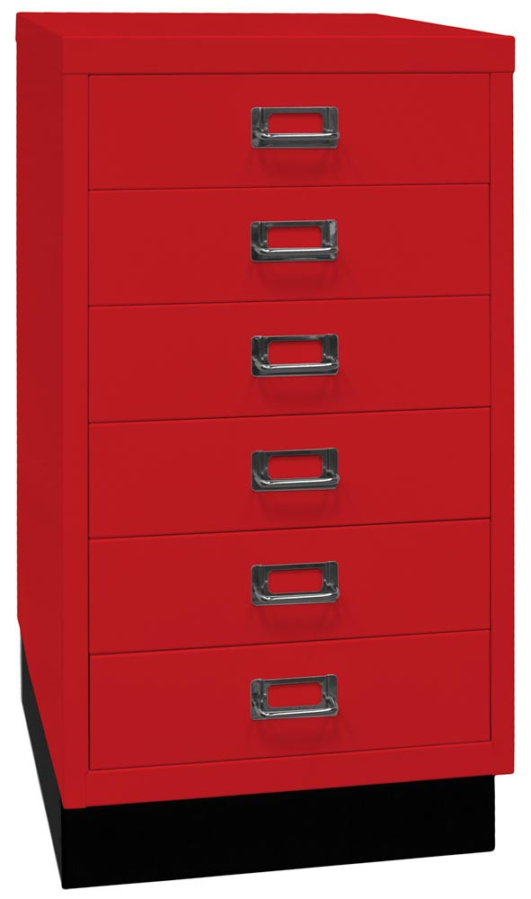 Büro-Schubladenschrank, BxTxH 349x432x670 mm, 6 Schubladen 87 mm, DIN A3, Sockel 80 mm hoch, kardinalrot