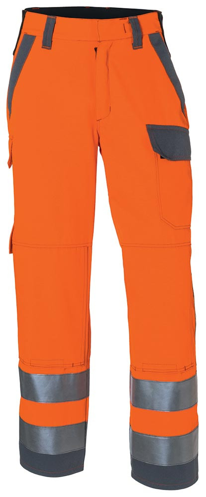 Nach EN ISO 11612:2015, EN ISO 11611:2015, EN 1149-5, EN ISO 20471+A1, IEC 61482-2 APC=2, EN ISO 15797 und EN ISO 20471 ∙ Knieschutztaschen zertifiziert nach EN 14404:2004 + A1:2010 Typ 2 in Verbindung mit Kübler Knieschutzpolstern ∙ Aus 31% Polyester/28% Modacryl/20% Aramid/20% Viskose FR/1% Antistatische Faser, ca. 320 g/m2 ∙ Futter: 50% Aramid/50% Viskose (FR), ca. 150 g/m2 ∙ Ergonomische Linienführung für mehr Beinfreiheit ∙ Reflex-Elemente an seitlichem Beineinsatz, zwei Reflexstreifen am Bein umlaufend ∙ FlexZone: elastischer Bundeinsatz ∙ Vorderhose doppellagig verarbeitet