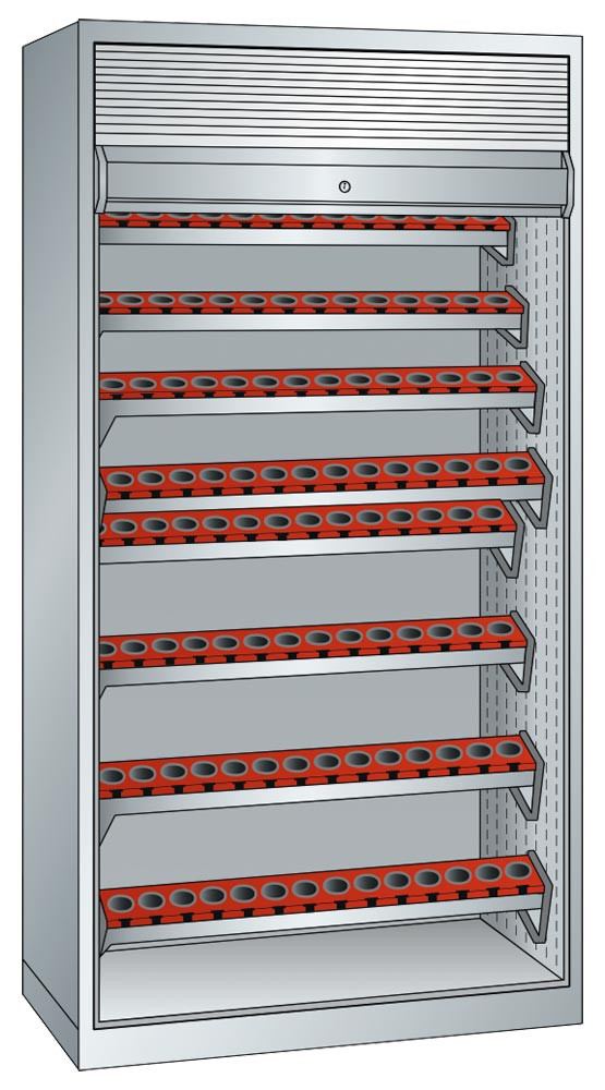 CNC-Rollladenschrank, BxTxH 1038x691x1950 mm, je 8 Werkzeugrahmen mit Träger, 64 Halter ISO-SK 50, RAL 7035 EP531552
