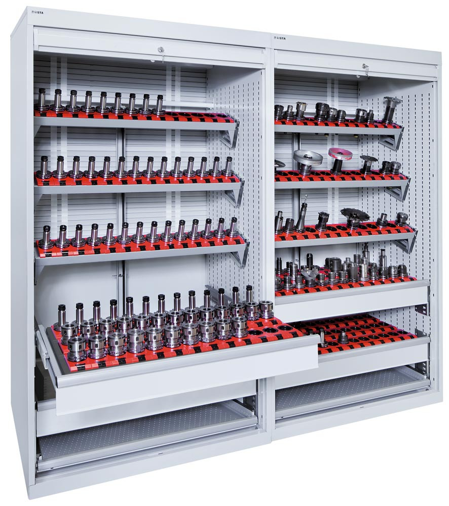 CNC-Rollladenschrank, BxTxH 1038x691x1950 mm, je 8 Werkzeugrahmen mit Träger, 112 Halter ISO-SK 40, RAL 7035 EP531550