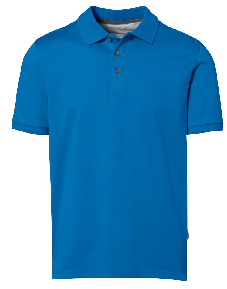 Single-Jersey aus 50% Baumwolle/50% Polyester, ca. 185 g/m2 ∙ Polo-Shirt mit hochwertig verarbeiteter 3-Loch- Knopfleiste mit extra haltbar angenähten, bruchsicheren Knöpfen ∙ Kragennaht und Innenseite der Seitenschlitze mit kontrastfarbigem Gewebeband belegt ∙ Durch ein spezielles Strickverfahren hergestellt, bei dem zwei Garne zu einem HAKRO COTTON TEC®-Double-Face-Material verarbeitet werden ∙ Innenseite mit Mesh-Lage aus Funktionsfaser