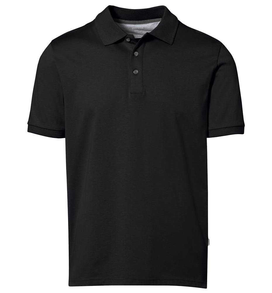 Single-Jersey aus 50% Baumwolle/50% Polyester, ca. 185 g/m2 ∙ Polo-Shirt mit hochwertig verarbeiteter 3-Loch- Knopfleiste mit extra haltbar angenähten, bruchsicheren Knöpfen ∙ Kragennaht und Innenseite der Seitenschlitze mit kontrastfarbigem Gewebeband belegt ∙ Durch ein spezielles Strickverfahren hergestellt, bei dem zwei Garne zu einem HAKRO COTTON TEC®-Double-Face-Material verarbeitet werden ∙ Innenseite mit Mesh-Lage aus Funktionsfaser