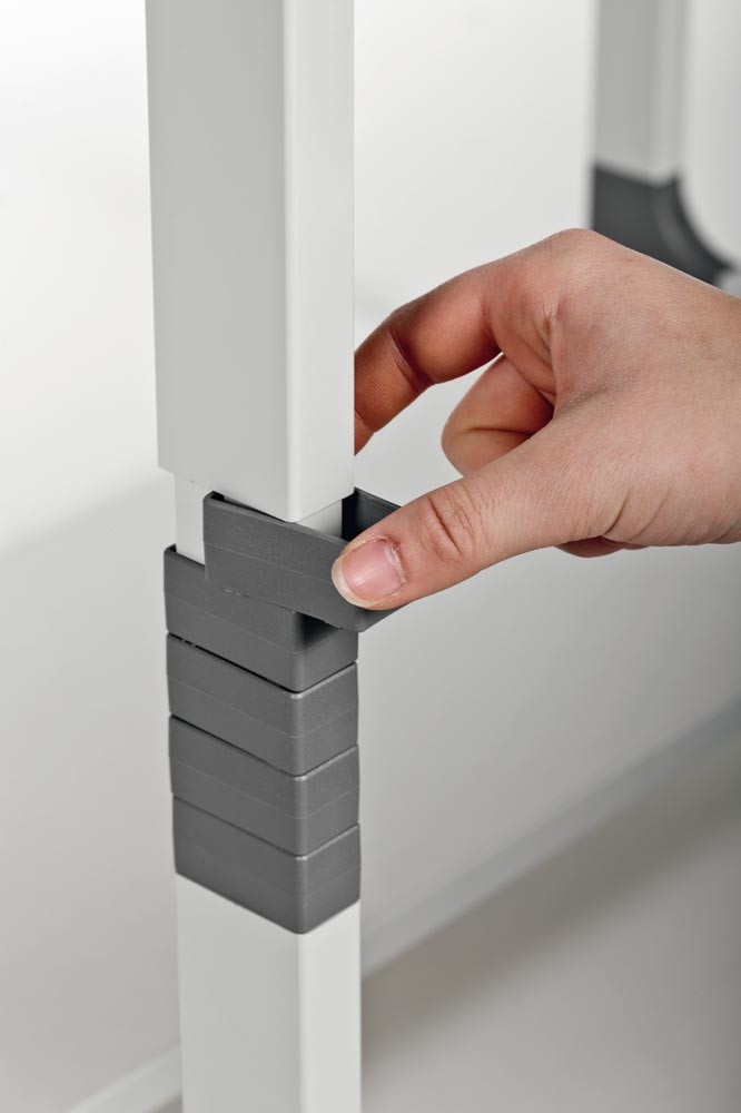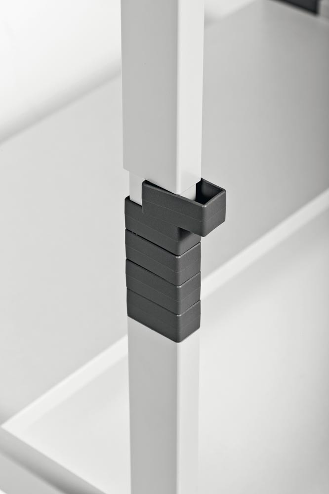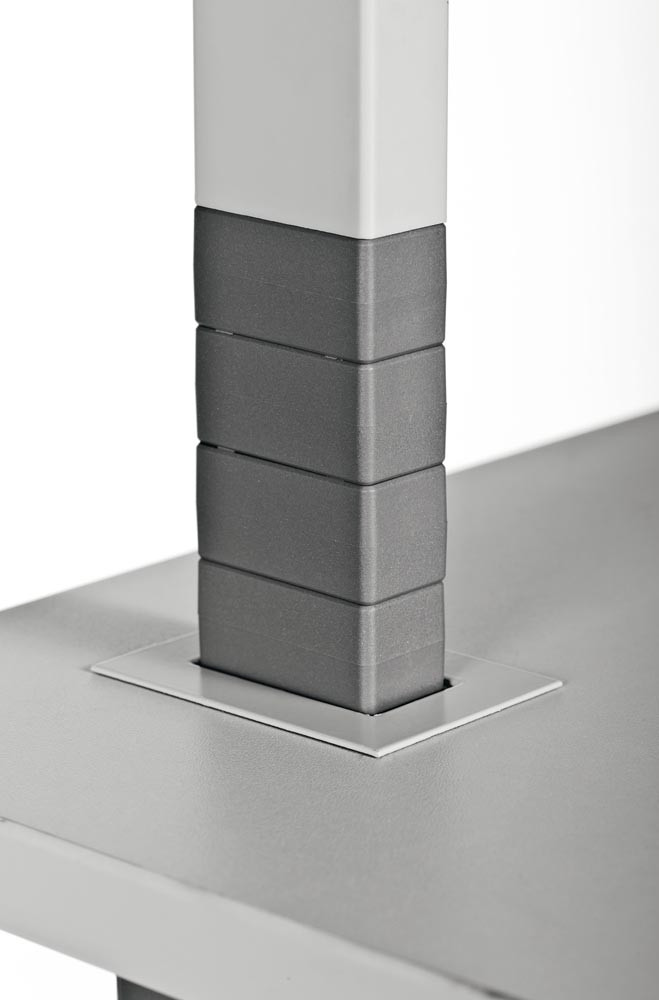 · Tischplatte, höhenverstellbar von 950 bis 1150 mm im 20 mm Raster · Tastaturauszug, höhenverstellbar bis 1005 mm im 30 mm Raster · 3 Ablageböden, höhenverstellbar im 30 mm Raster