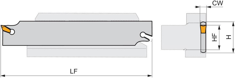 Ein-und Abstechschwert federgeklemmt zum spannen einer einseitigen Wendeschneidplatte mit 6.35mm Schnittbreite (Bezeichnung LFMX 6.35-. ) · Werkzeugbestückung mit 32-DU.. für eine maximale Einstechtiefe von 60mm · Werkzeugschwert-Höhe 32mm und Länge 150mm zum tiefes radiales Einstechen · Abstechen und Rohr-Abstechen