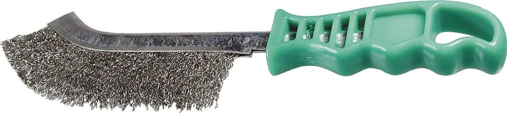 gewellter Draht · mit handlichem Kunststoffgriff · Bürstenrücken aus starker Stahlschiene · Nutzlänge 140 mm